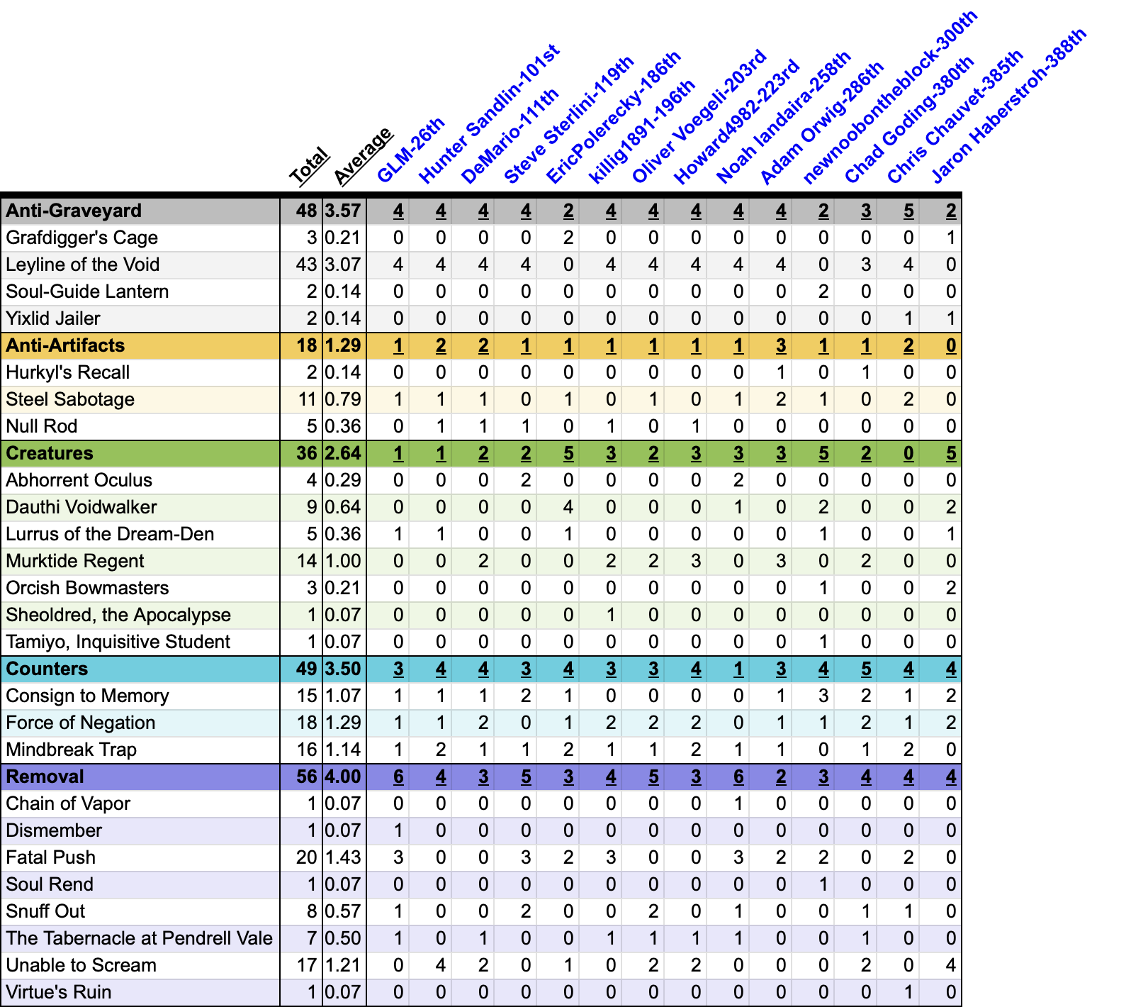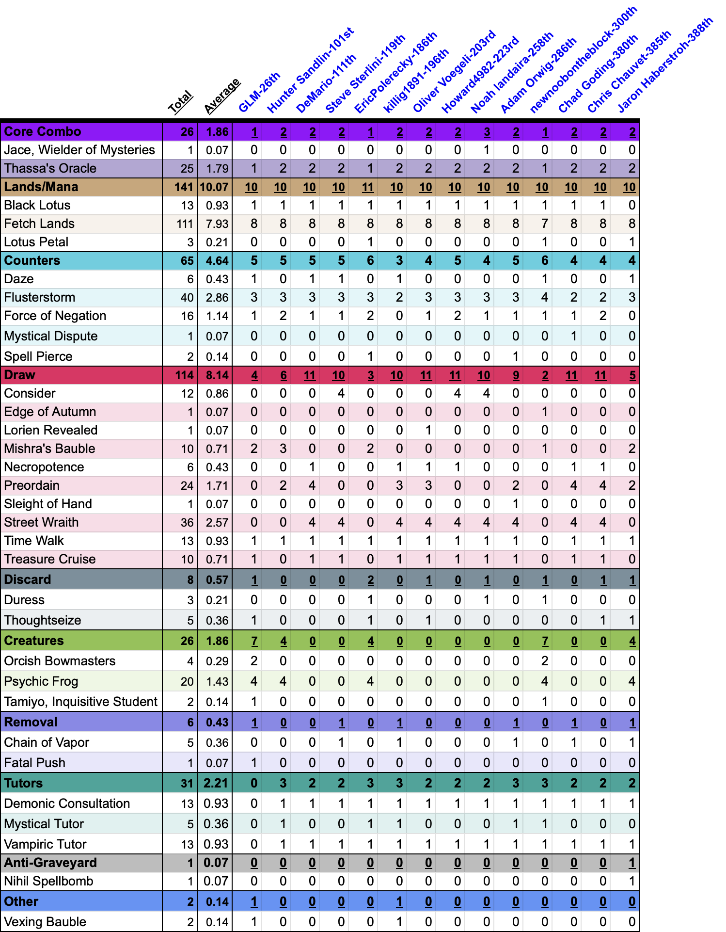 Highest being 26th is a bit of a bummer, and don't ask my opinion on Lurrus Doomsday doing the best. At least no one played Tinker Doomsday this year?