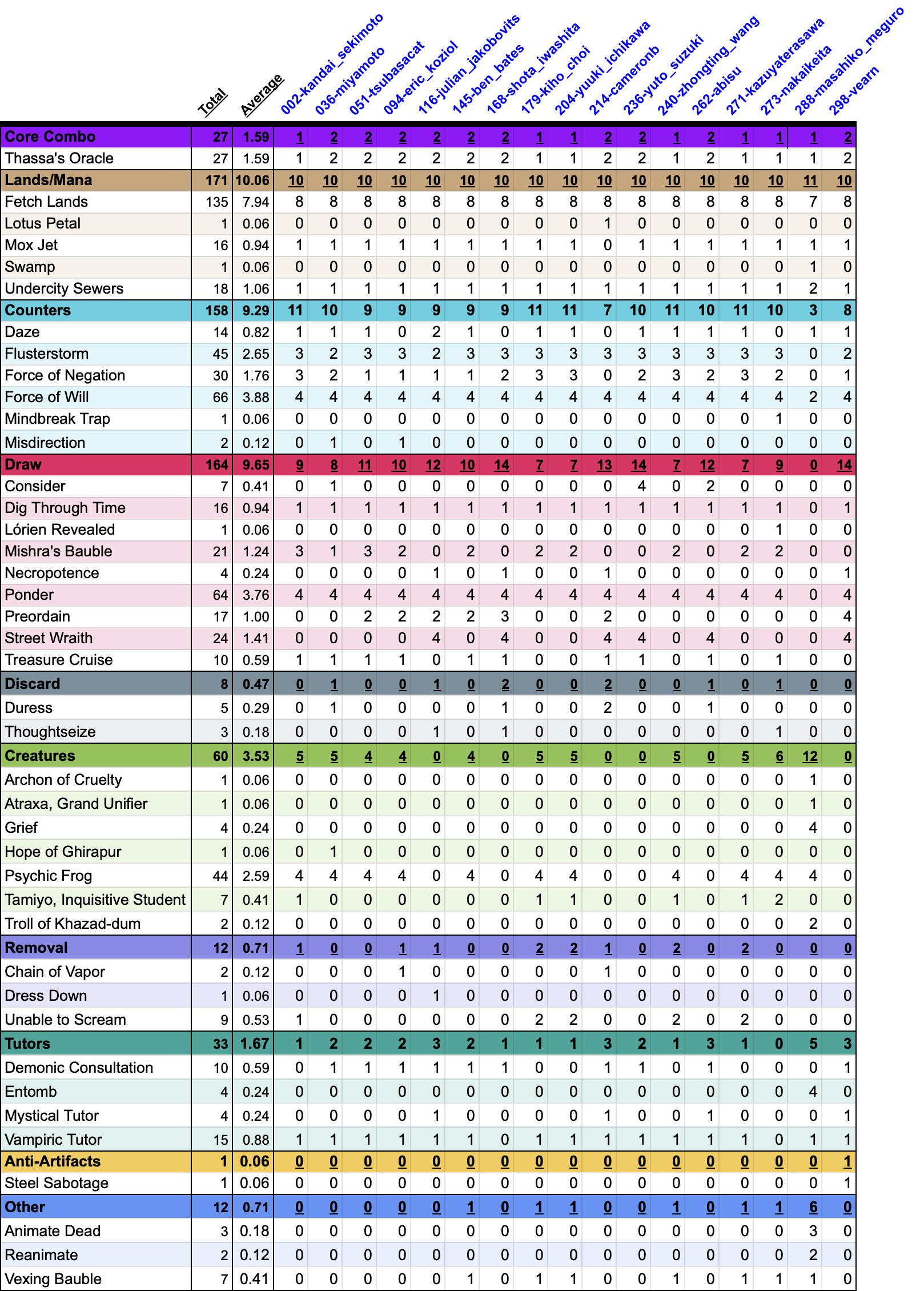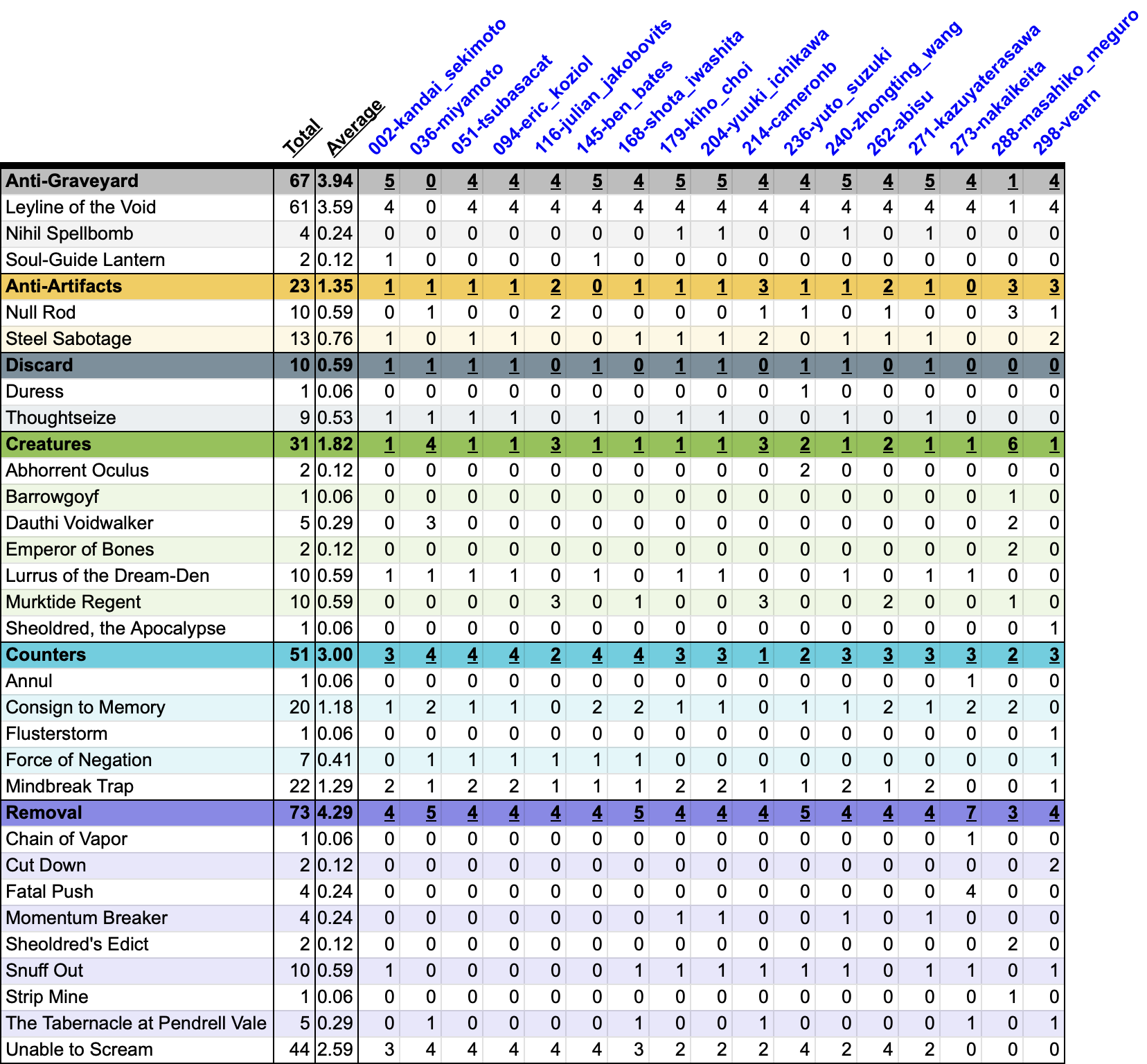 It seems on average that the Lurrus builds are slightly more popular. And Unable to Scream is the big winner this year, with 44 copies amongst all lists despite seeing no play in 2024.